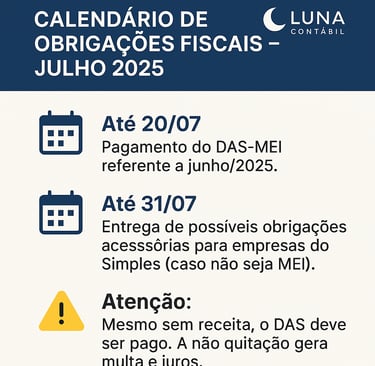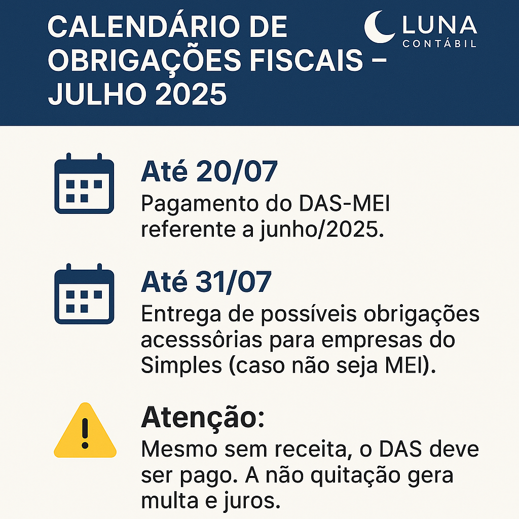 📅 Calendário de Obrigações Fiscais – Julho de 2025